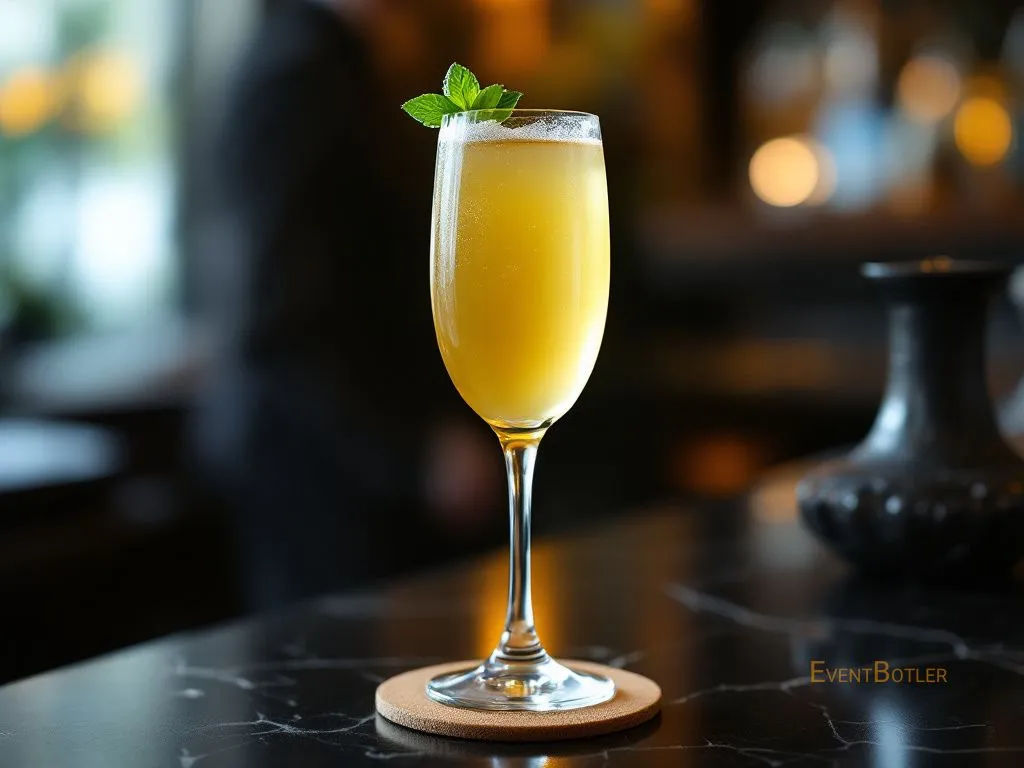 Cocktail rafraîchissant à base de rhum ambré, miel, jus de citron vert et champagne. Parfait pour les amateurs de boissons pétil…