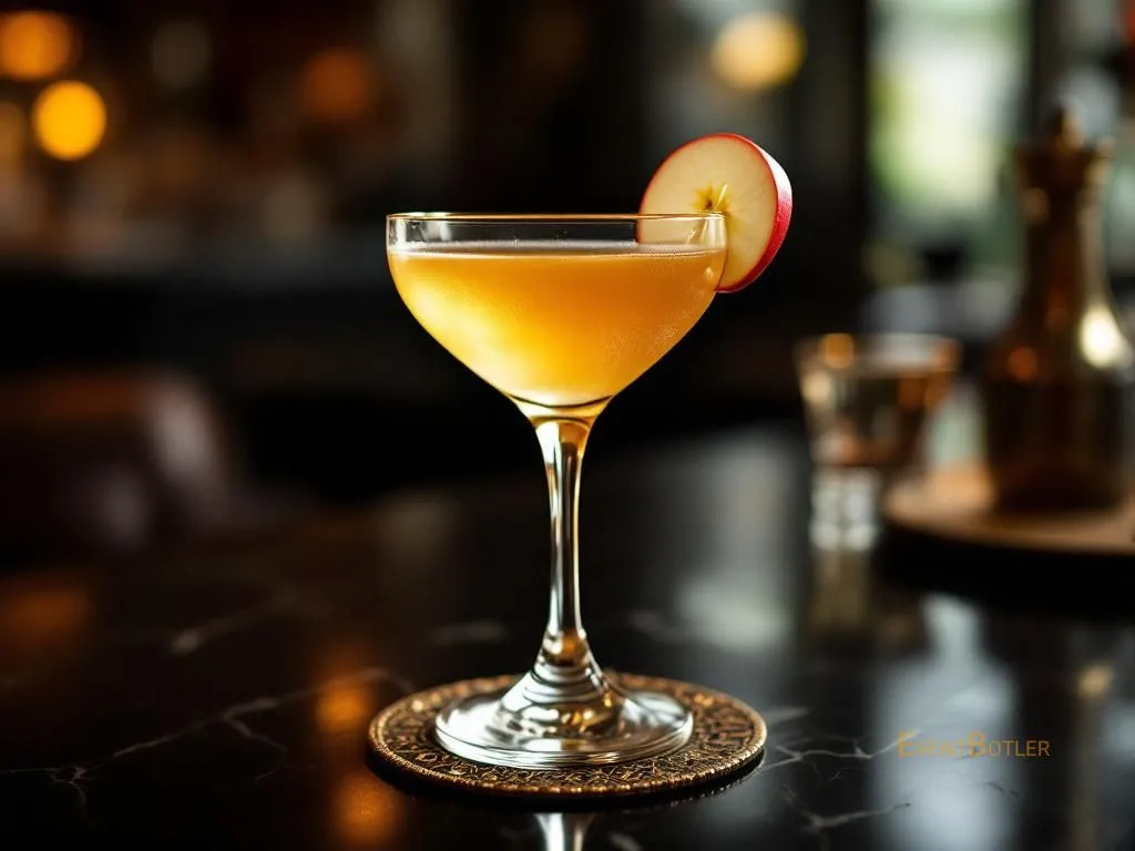 Cocktail doux et fruité à base de gin, liqueur d'abricot et calvados. Parfait pour les amateurs de boissons fruitées et équilibr…