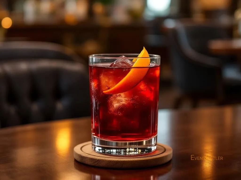 Cocktail classique à base de bourbon, Campari et vermouth rouge. Parfait pour les amateurs de boissons robustes et aromatiques.