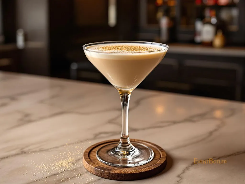 Cocktail crémeux à base de Cognac, liqueur de cacao, crème fraîche et noix de muscade. Parfait pour les amateurs de boissons dou…