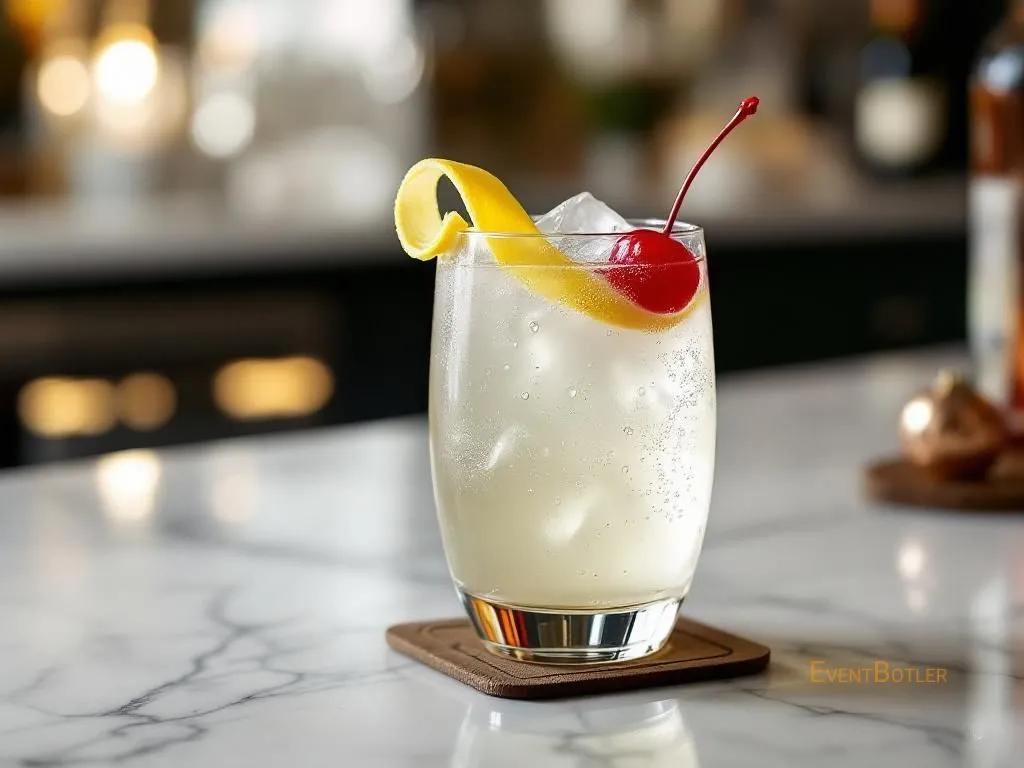 Cocktail rafraîchissant à base de gin, jus de citron, sirop de canne et eau gazeuse. Parfait pour les amateurs de boissons légèr…